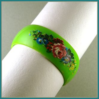 Винтажный браслет из пластика насыщенного зелёного цвета.
