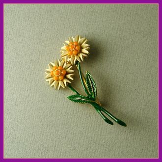 Чудесная винтажная брошь от Weiss. Позолоченный сплав с покрытием холодной эмалью, брошь декорирована бусинками нежно-кораллового цвета (пластик). Маркировка - WEISS, 1950-60-е гг., США.