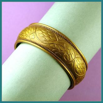 Браслет-манжета ручной работы, латунь с покрытием под золото, чеканка. Золотое покрытием почти стёрлось, браслет искусно выполнен.