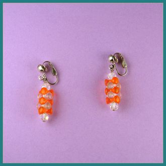Винтажные клипсы из сплава с покрытием под серебро, подвески украшены фигурными бусинами из пластика.