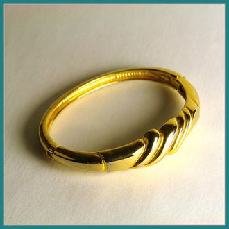 Очаровательный винтажный браслет из сплава с покрытием под жёлтое золото. Имеет крепкую застёжку, не маркирован, 80-е гг. ХХ века, США. Рельеф браслета имеет еле заметные следы износа золотого покрытия, заметные только при близком рассмотрении.