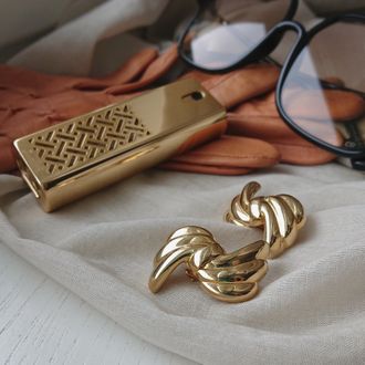 Винтажные клипсы из сплава с покрытием под полированное жёлтое золото.