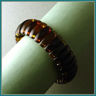 Приятный винтажный браслет из пластика, имитирующего черепаховый панцирь. Фигурные бусины собраны на эластичном шнуре, браслет очень приятный на ощупь, комфортный в носке.