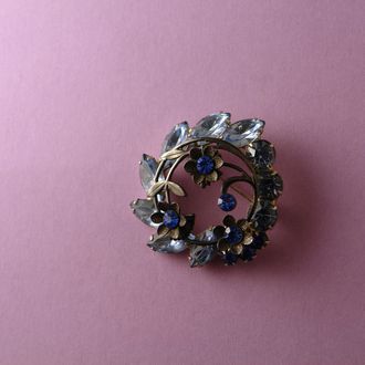Эта красивая винтажная брошь воплотила в себе прекрасный период, когда холодные ветра зимы уступают место свежести весеннего воздуха. Сплав с покрытием под серебро и чернёное серебро, вставки - красиво мерцающие кристаллы голубого и лазурного цветов. Брошь не маркирована, по технике исполнения очень похожа на марку Delizza&Elster, 1960-е гг., США.