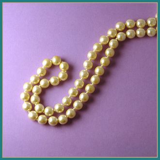 Посмотрите на эти милые винтажные бусы из искусственного жемчуга (стекло) чудесного нежно-бежевого оттенка. Красивая фигурная застёжка сделана из сплава с покрытием под золото, все бусины обвязаны узелками. У бусин чудесный жемчужный блеск!