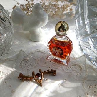 Стилизованная куриная косточка - амулет на удачу - украсила эту антикварную брошь-малышку. Латунь с покрытием (похоже на позолоту), центр брошки украшен кристаллом рубинового цвета необычной, многоугольной огранки. Брошечка не маркирована, есть лёгкие потёртости на металле, в целом же, хорошо сохранилась для своего возраста. 1890-1910-е гг., США.