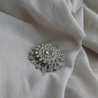 Старенькая хорошенькая брошь ждёт свою хозяйку! Похожа на большую красивую снежинку! Собрана из двух деталей и щедро украшена прозрачными кристаллами. Мне кажется, её хорошо будет носить в паре с какой-нибудь серебристой брошью. Не маркирована, 1940–50-е гг., США.
